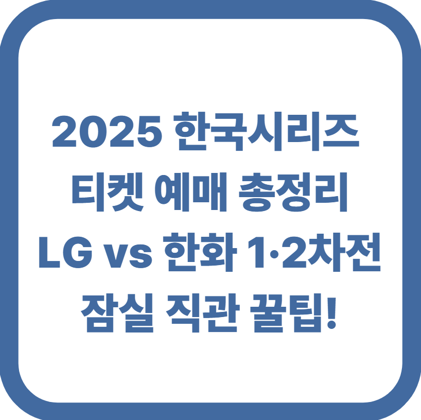 2025 KBO 한국시리즈 LG 트윈스 vs 한화 이글스의 1·2차전 티켓 예매가 10월 25일 오전 11시에 시작됩니다. 잠실야구장에서 열리는 직관을 위한 예매 팁, 예매처, 일정 등을 한눈에 정리했습니다.