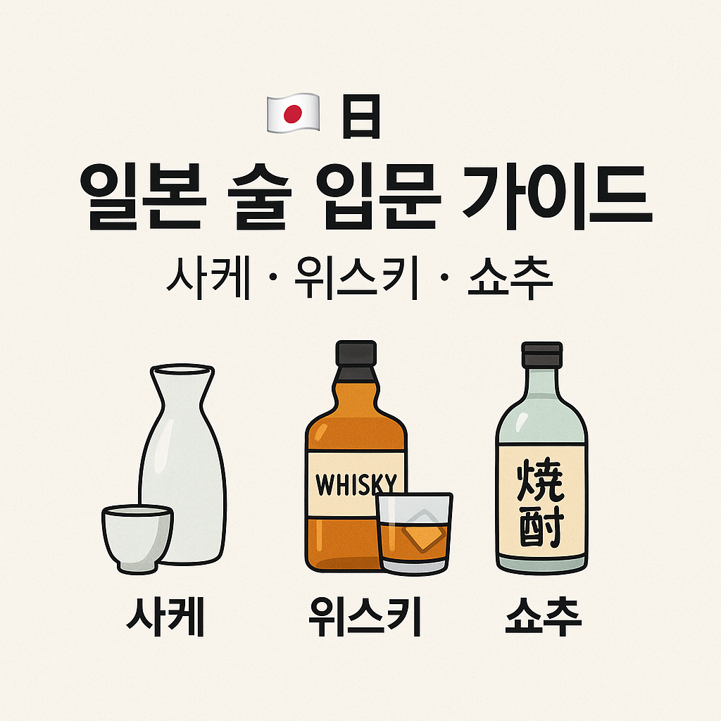 “사케, 위스키, 쇼추… 일본을 대표하는 전통 술 3종을 한눈에! 제조 방식부터 맛의 차이, 추천 브랜드까지 초보자도 이해하기 쉽게 정리했습니다.”