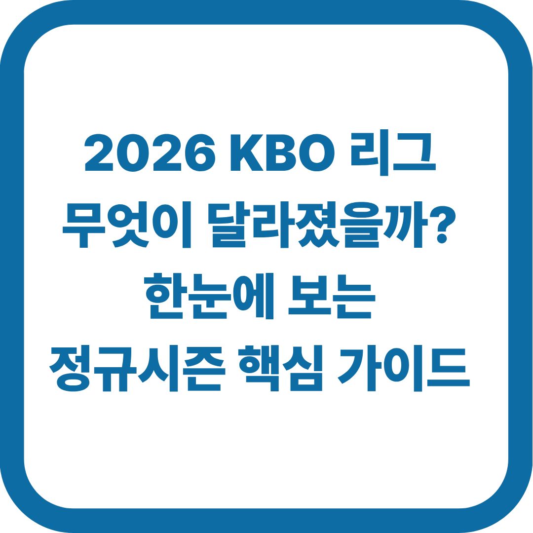 2026 KBO 리그 정규시즌의 핵심 변화를 정리해 드립니다. 새롭게 도입된 아시아쿼터 제도, 단축된 피치클락 규정, 연장전 및 더블헤더 규칙 등 올 시즌 프로야구를 더욱 재미있게 즐기기 위한 필수 가이드를 확인해 보세요.