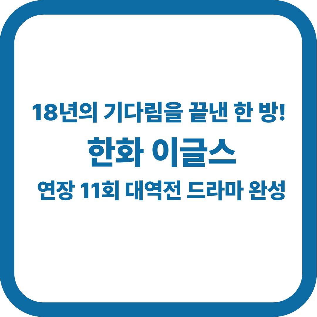 - 연장 11회의 혈투: 새롭게 바뀐 룰에 따라 11회까지만 진행되는 연장전에서 키움이 9-7로 다시 앞서갔지만, 한화의 집중력은 끝까지 대단했습니다.